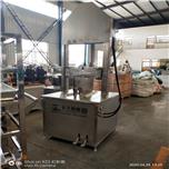 2、把豬頭或者羊頭朝下,放入圓形劈蹄專用模具,按壓控制手柄,豬頭被緩緩下壓,從下面出料口接住劈開的豬頭,即可完成豬頭切半工作。