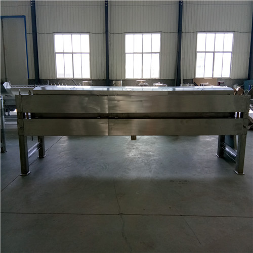 產品展示 位置:首頁>產品展示 臥式脫毛機 品牌:正豐 規格:據實 時間:2015-12-31 9:20:00 臥式脫毛機 該設備是肉雞、鴨、鵝進行脫毛工作的另一種設備,為臥式轉輥結構,采用鏈條傳動,使上下兩排脫毛輥實現相對轉動,從而脫去雞毛,上下兩排脫毛輥的間距可以調整,以適應不同雞鴨的需要。 技術參數: 功率:4kw-2臺 脫毛能力:2500只/小時(TQW60型) 1500只/小時(TQW50型) 外形尺寸:4500mm*1600mm*1200mm(TQW60型) 4200mm*1600mm*1200mm(TQW50型) 報價:32000元 上一條:保溫燙池 下一條:生豬脫毛機 相關新聞 相關產品